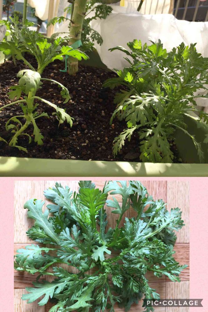 コンパニオンプランツとして 鈴なりブロッコリーと同居している摘み取り春菊❣️