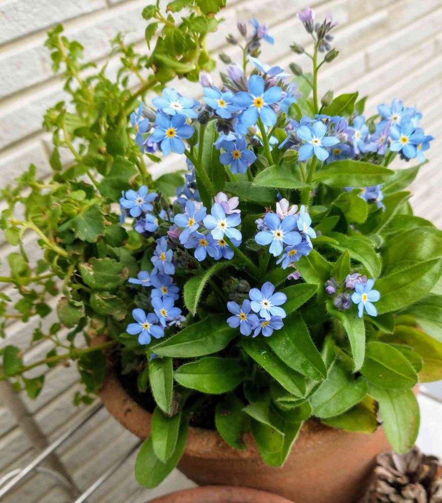 可愛い勿忘草(ワスレナグサ)の花と💙💜🌿