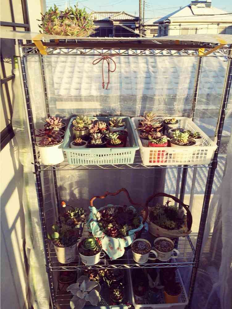 カゴ寄せ植えとアエオニウム属だけは中に入れました(^_−)−☆
