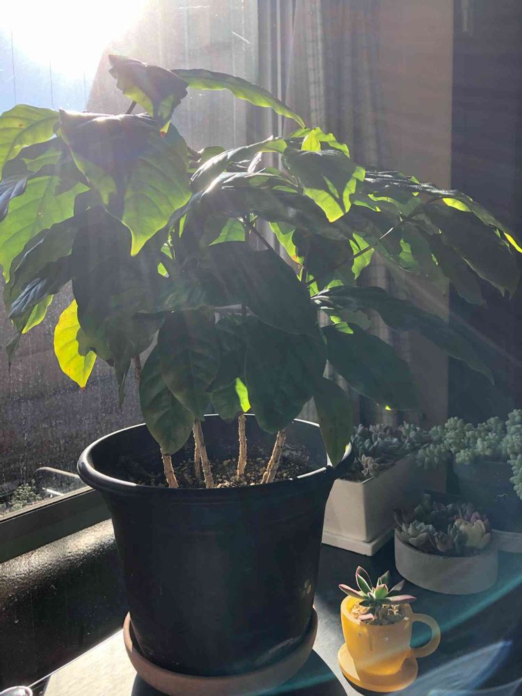 逆光がいい感じになって、コーヒーの葉っぱの汚れとかも、ごまかせました(笑)🤣