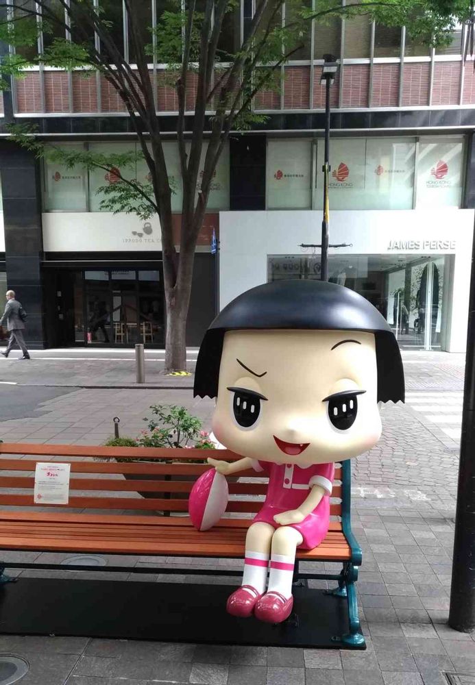 丸の内仲通りの歩道に、チコちゃんのベンチが置かれていて、隣に座って一緒に記念撮影している人も沢山いました。😀