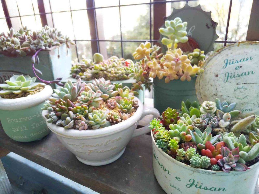 ゆうさんの寄植えは、可愛くて、鉢もみ〜んな素敵です😍1番左のまぁるい鉢も多肉さんにぴったりですね〜✨
