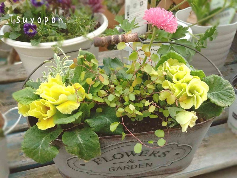 ジュリアンのマスカットのジュレさんとチロリアンデージーさんをメインに寄せ植えを作りました(*^^)v