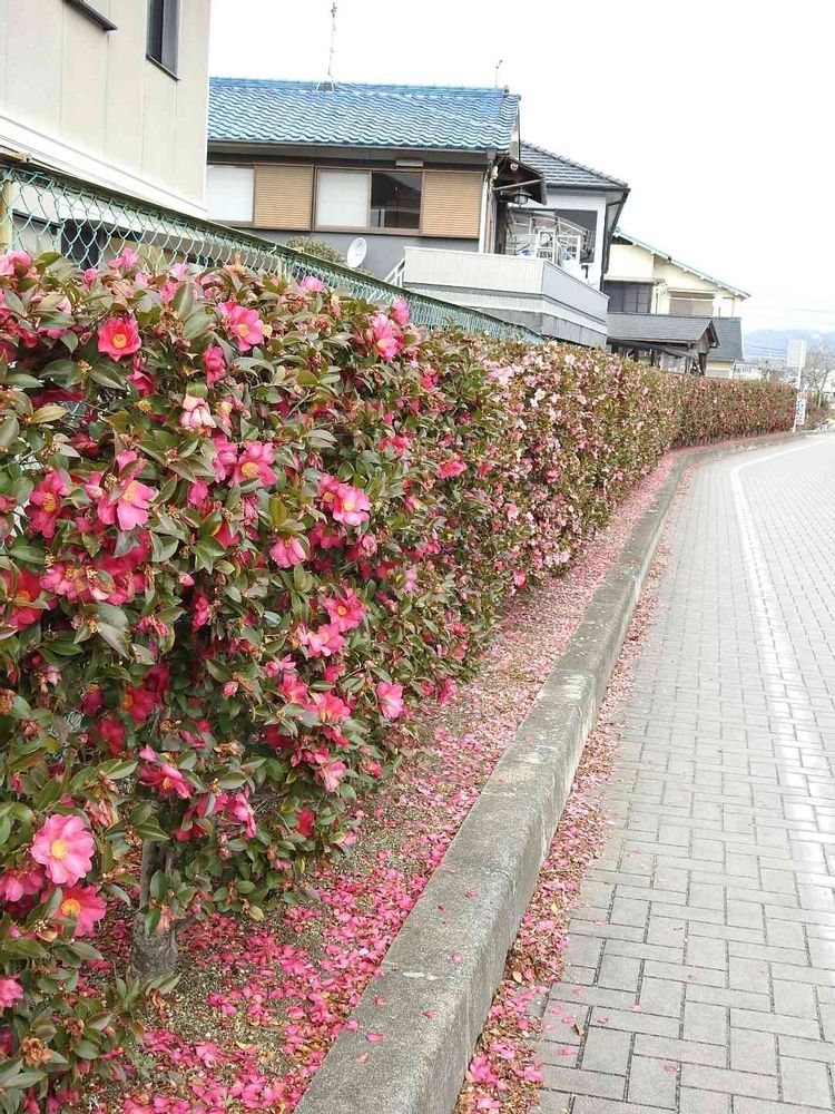 葛下川の河川敷公園⛲の綺麗な生け垣🏵サザンカの花🏵
