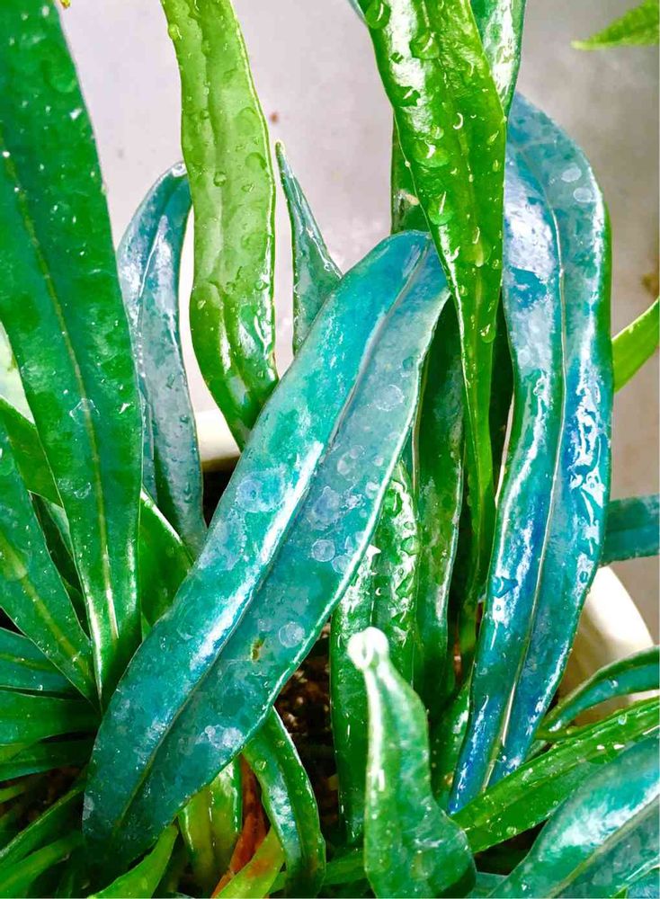 おはようございます。水やりした後はギラギラになります。青くない葉も全てメタリックな感じでうちでは異色の存在ですね。