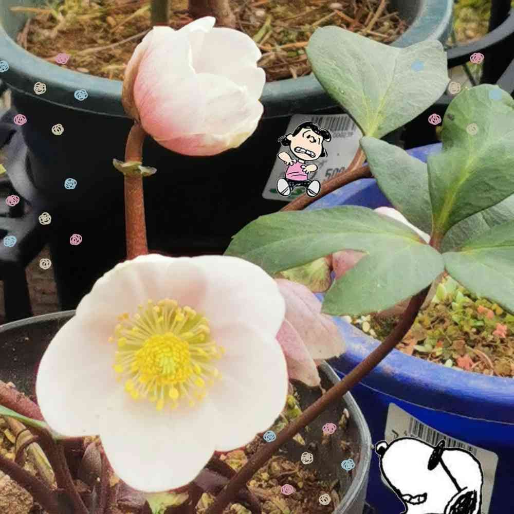 この子、よく見るクリスマスローズの花の形とちょっと違うみたいで、梅の花の様な形してますね‼️