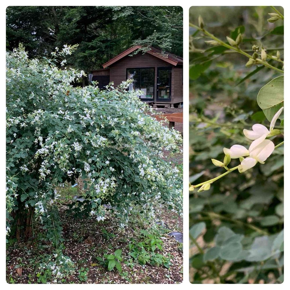 唐招提寺の境内で、あちこちに咲くハギの流れるような白いお花に魅了されて、家に定植して3年目。秋の気配がすると一つ二つと開花し後は一気に溢れんばかりの花を咲かせます。緑と白は癒しの色・・・