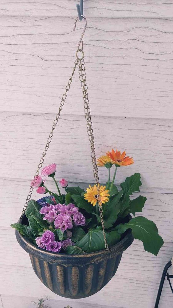 とても可愛い吊り鉢と素敵な色の寄植えですね🤗