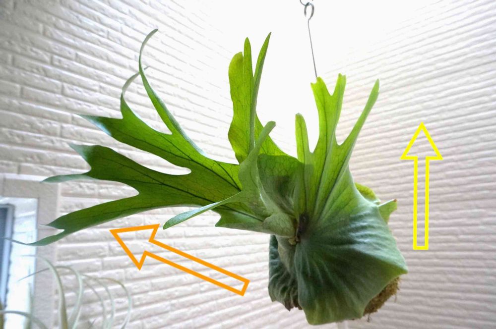 苔玉吊り仕立てで貯水葉に方向性があるビカクを育ててる方へ