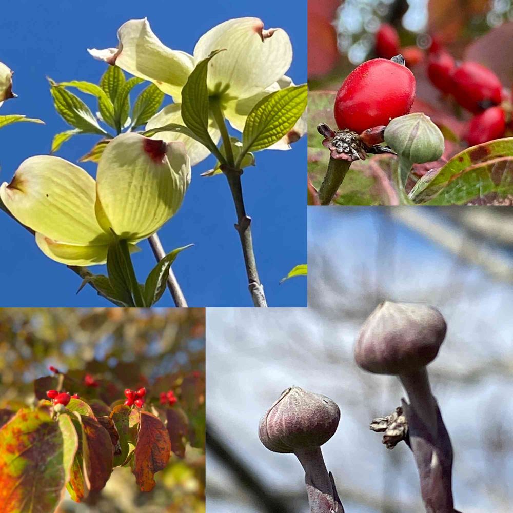 花以外はお散歩で立ち寄る所のハナミズキです。昨年の秋10月に輝くように実った真っ赤な実がとっても可愛かった❤️です。