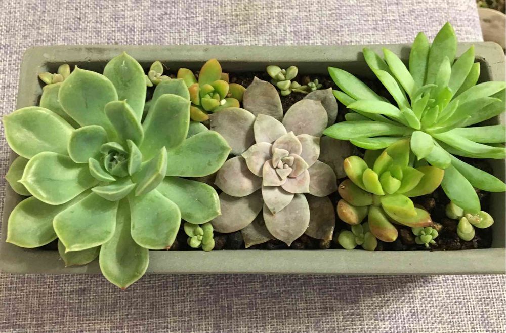 昨日作った寄せ植えですが、大きめな多肉、スーパーで買ったので三つとも名前がわかりません。どなたか教えてください🙌