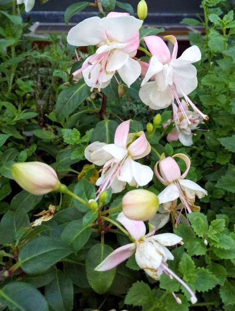淡いピンクと白のフクシアの花、とても素敵です💕