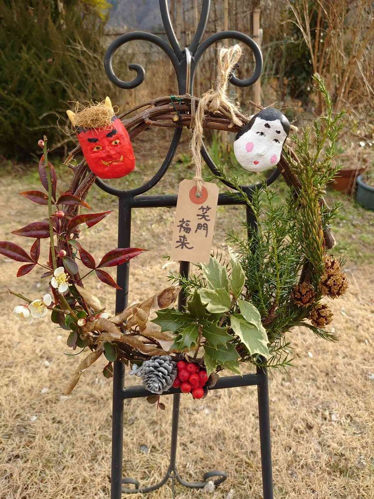 先週の日曜日になんか出したいなと思って節分のリースを作ってみました
