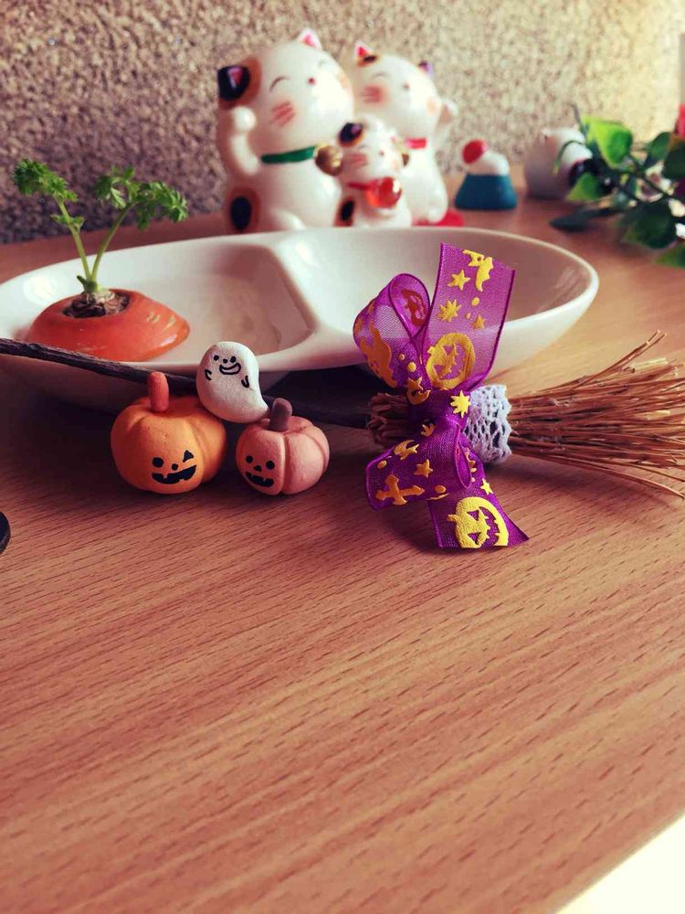 ついでに紙粘土で作ったカボチャとオバケも飾ってちょっとハロウィン風✨