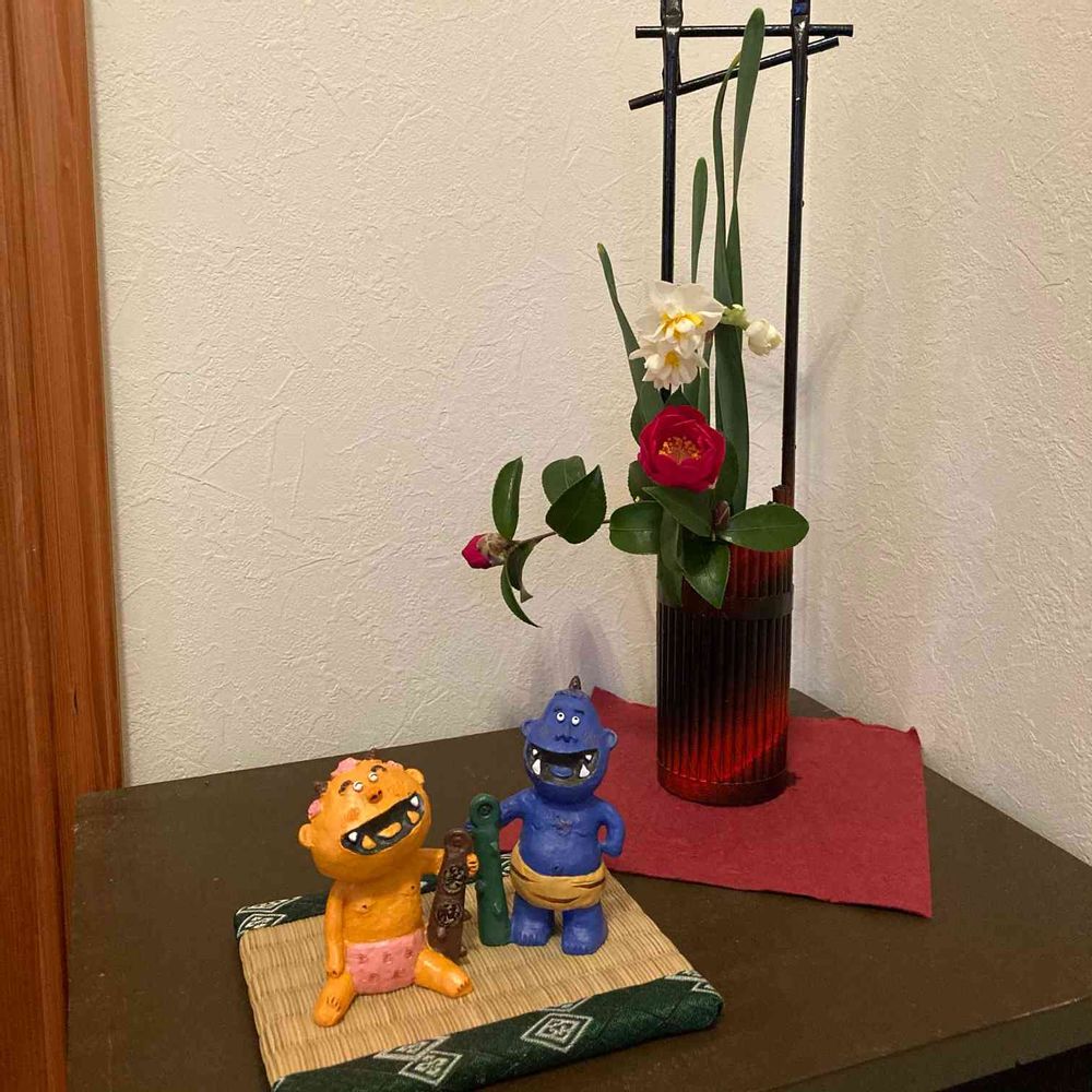 かわいい鬼さんたちと、冬のお花のあしらい✨✨✨