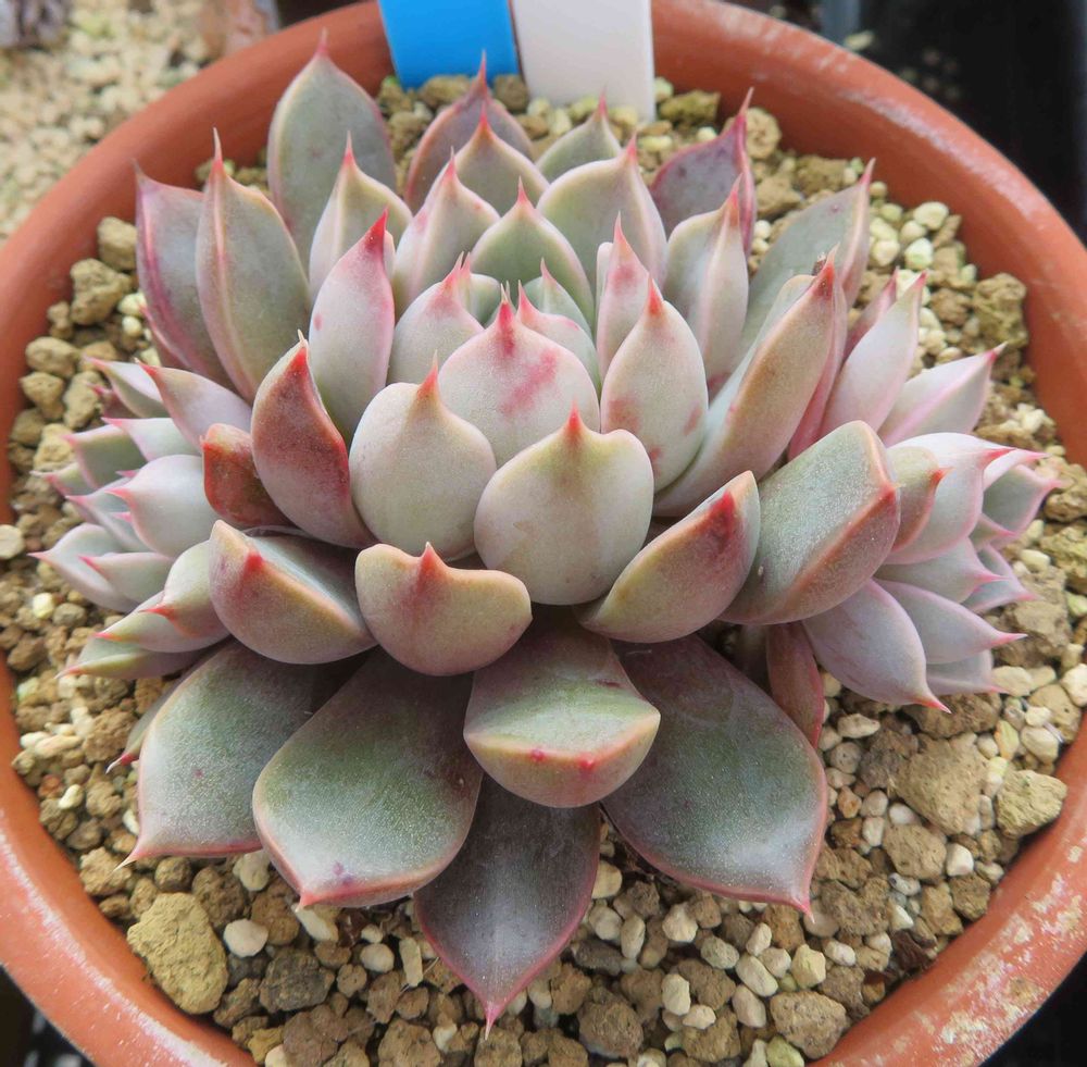 元々こういう性質なのか,爪も葉も統一した色にならないエケベリアのロマン。きれいなのかそうでないのかよくわからない色合いが独特。