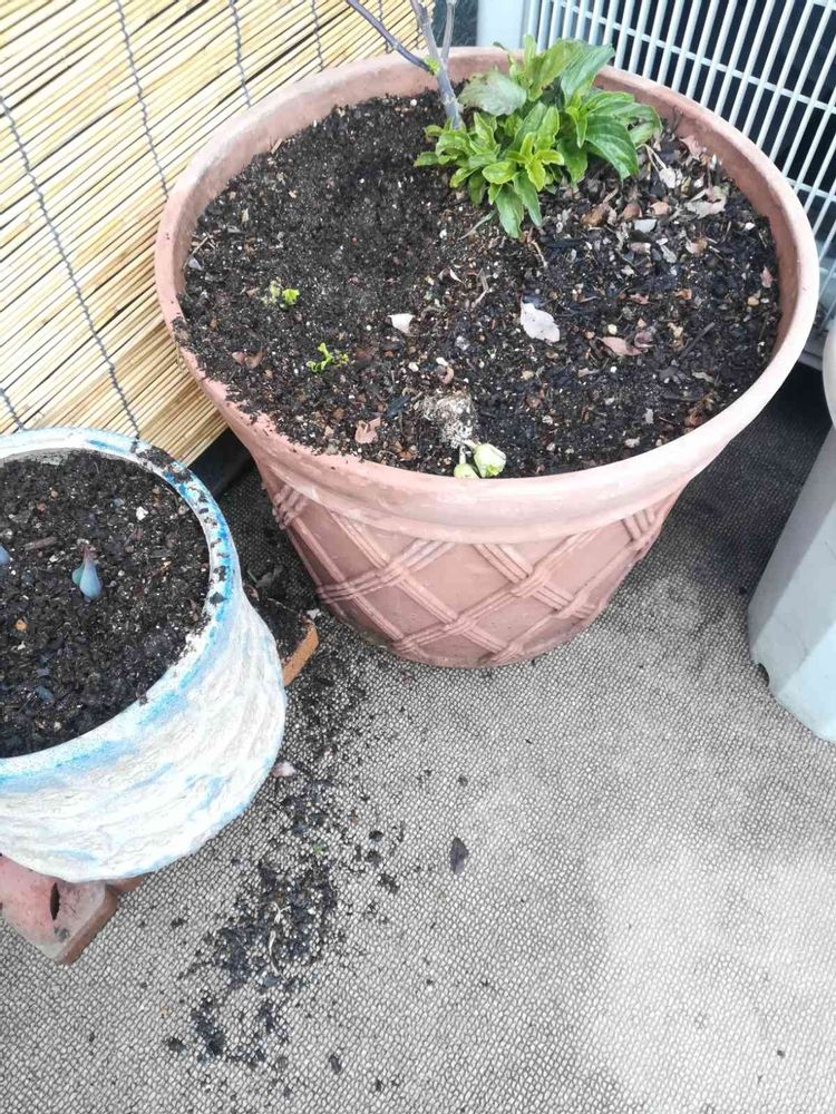 夏の3種寄せ植えが、1種だけ冬越ししそうなので、空いたスペースに根付きのほうれん草を植えてみたところ