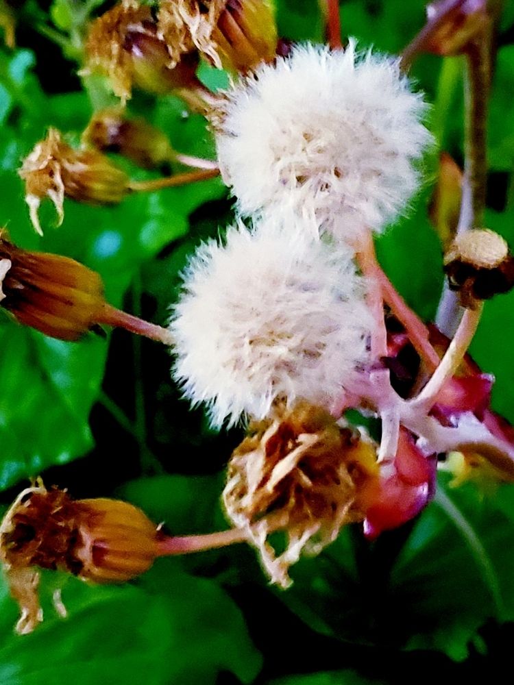そこには、綿毛をつけたツワブキの花が咲いていた。