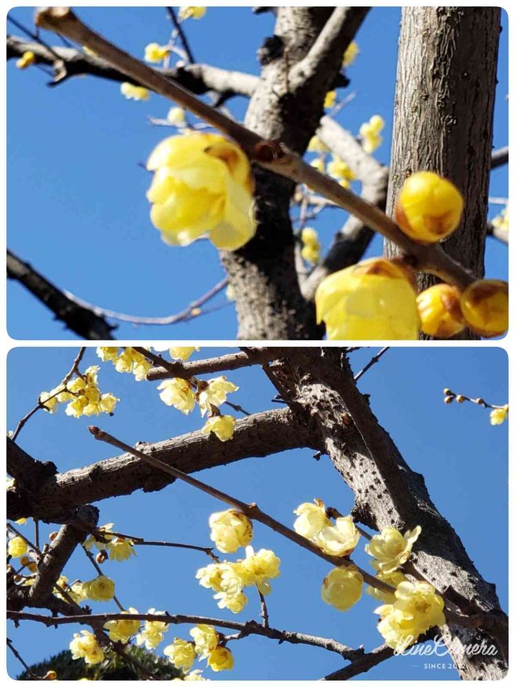 青空に、黄色の臘梅のコントラストが🌼綺麗👏👏👏