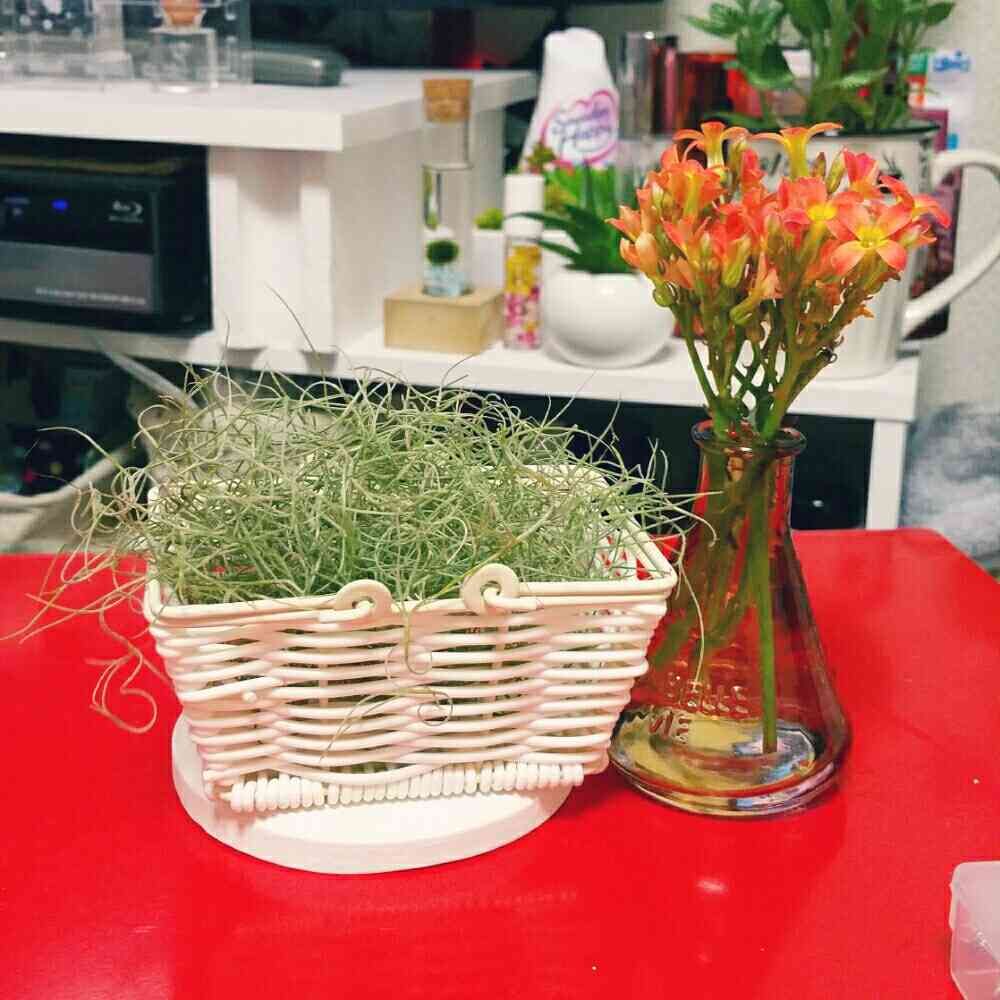 細々になったウスネさんとミリオンスターの花をそのままでは不格好だったので100均でバスケットと挿し瓶チョイスしてみました☆