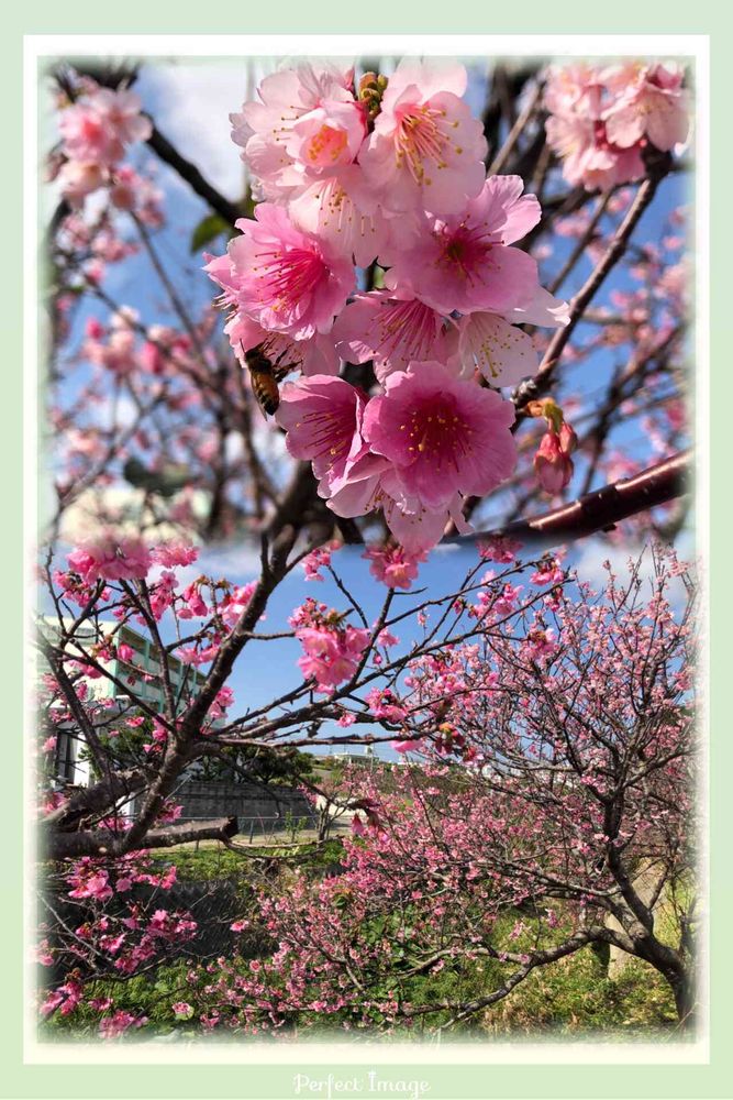 沖縄は、暖かくなり春がやって来ました😊うるま市赤野のヌーリー川の桜並木は、