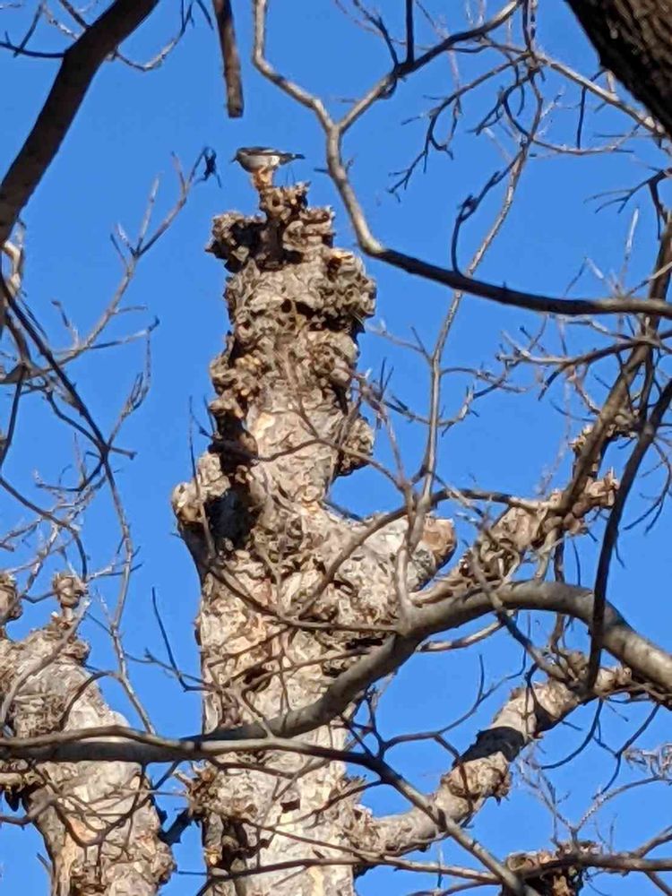 お隣との間にニョキッと生えている欅の古木。その洞をつい最近までアオゲラが使っていて、コンコンコンコンその音が響いて楽しかったです。さっき見上げると、天辺にムクドリ!住人が交代したかな?昨年初めて我が家の屋根にも現れて、10羽以上がこのケヤキとの間を行ったり来たり。その騒々しさと言ったら!又今年もあの騒ぎが始まるのかな〜と思うと、ちょっと憂鬱…。😅