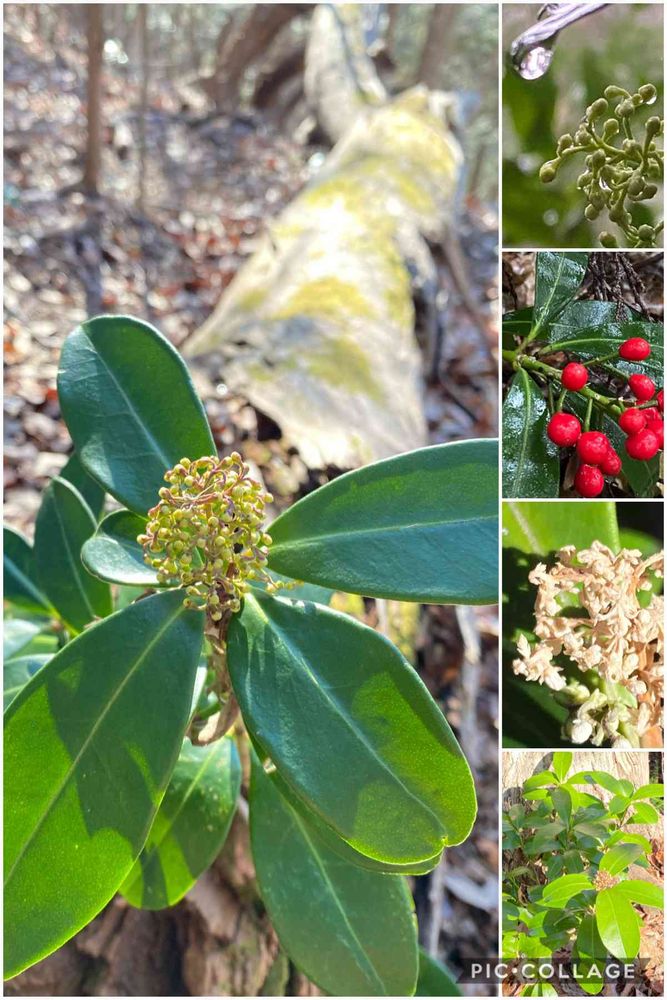ミヤマシキミの葉の緑は、この時期の山中で目にも鮮やかな緑。鮮やかだけど、目は癒されます✨