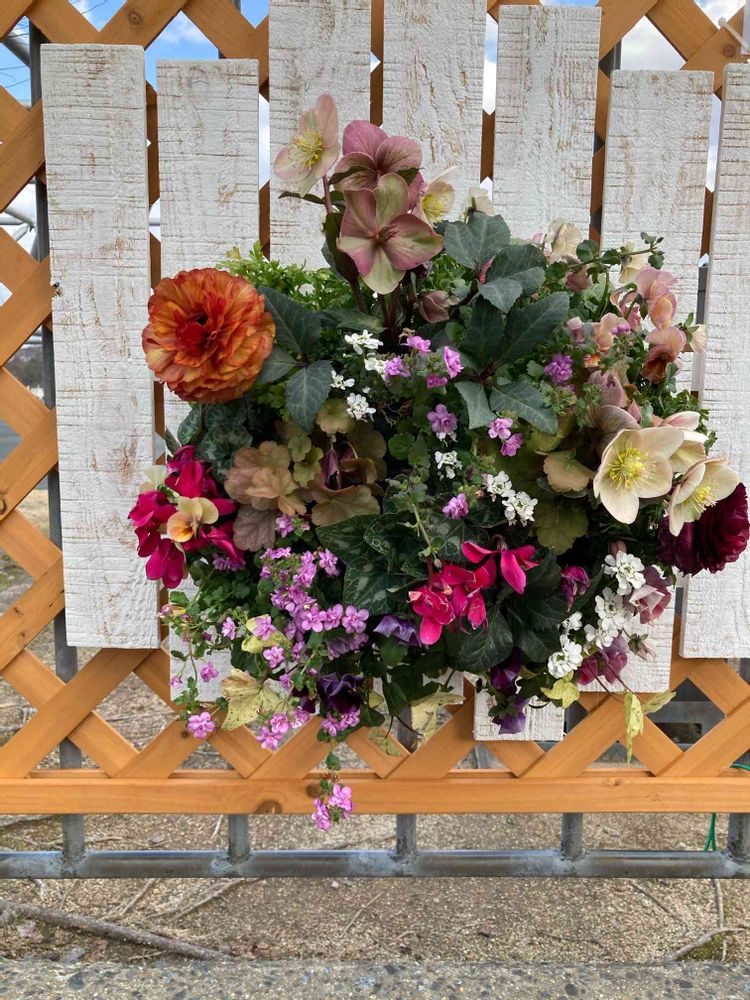 クリスマスローズのハンギングバスケット、寄せ植え④