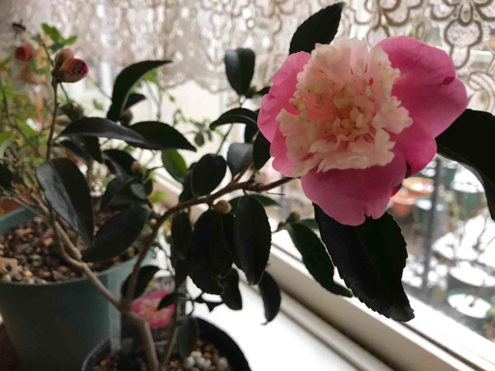 鉢花を探してJAに出かけたら可愛い椿を見つけました。
