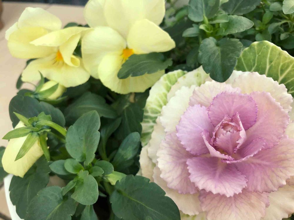 春を感じてまた咲き出してきたパンジーさん🌼と寒さへっちゃら葉牡丹さん🌸