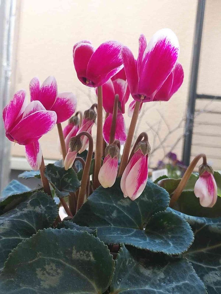 今年は遅咲きのガーデンシクラメンプチティアラ1輪開花から10日が経ち次から次へと上がってきました🤗🎶今年もピンと元気に咲いております💗