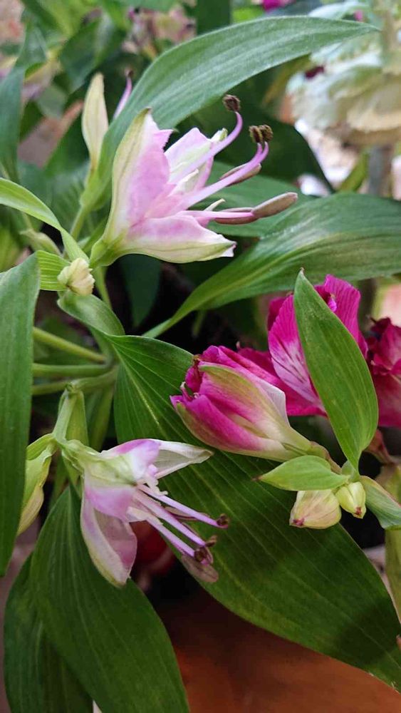 今年もお迎えした切り花🌸アルストメリア🌸🌿 鮮やかなピンク色のお花が終わったので摘んで、直ぐしたに有った蕾が開いてくれました。全く別のお花みたいとやっぱり思ってしまいます😊可愛いので👀📱✨💕