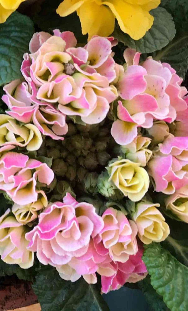 淡ピンクの お花のリング が綺麗でupしました〜🌸❀.*・゚✿゜:。* 🌸 いまは、ベランダに 黄いろい ジュリアン と寄せ植えをしてあります 💞 奥に控えている 蕾も、可愛らしくて 楽しみです♡ℒฺℴฺνℯฺ♡