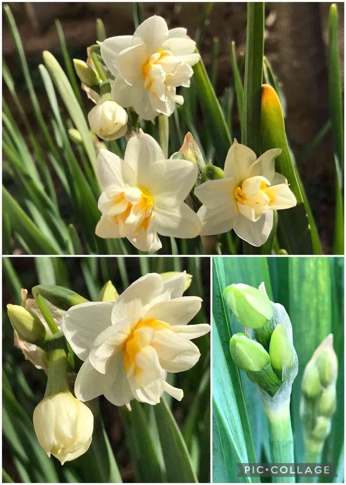 枯れ色の庭に、ゆでたまご色の水仙が咲きました🤍💛