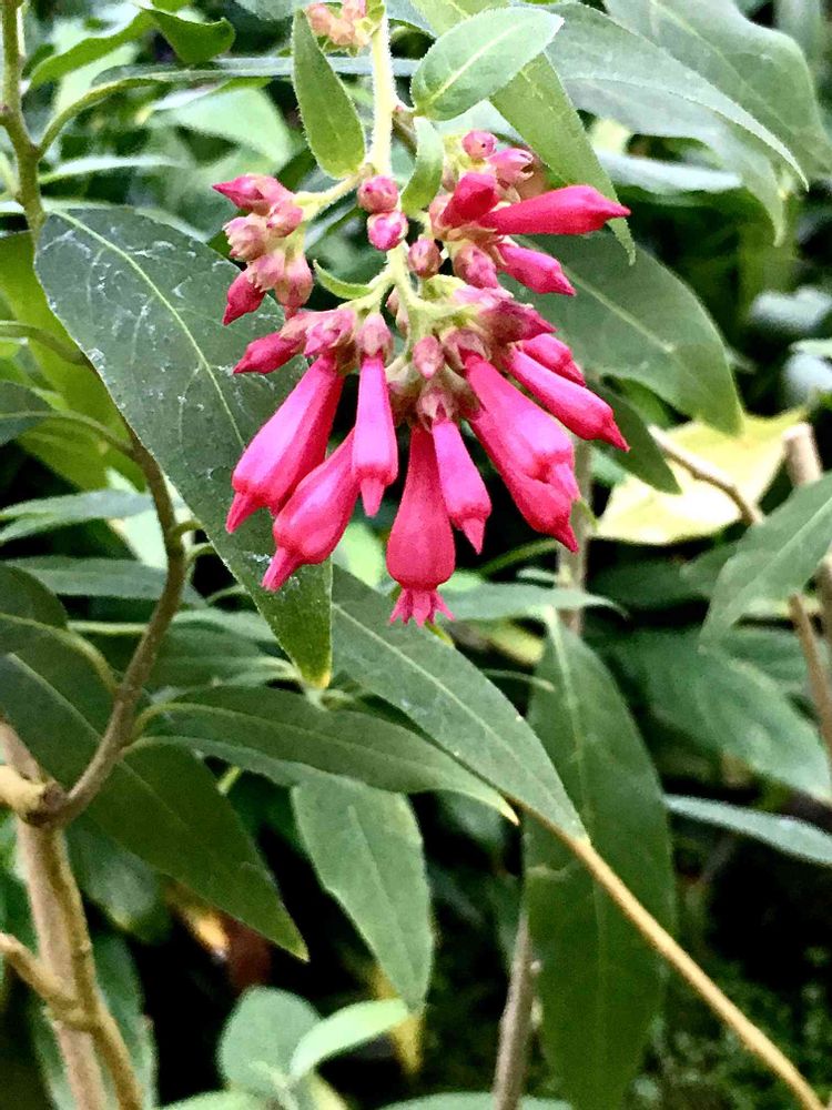 ピンクの筒形の花が沢山ぶらさがってますねー🥰