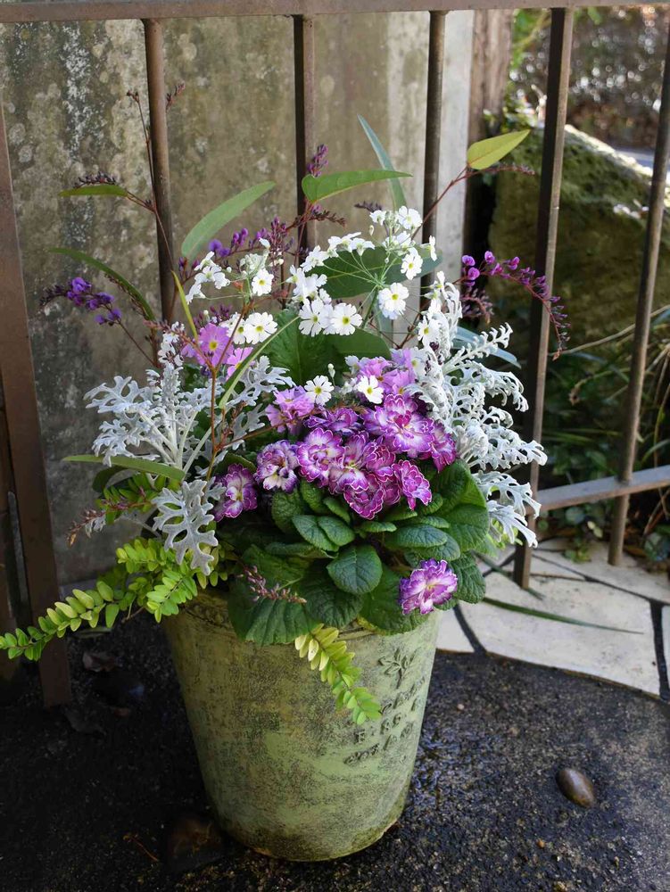 プリムラとハーデンベルギアの寄せ植え