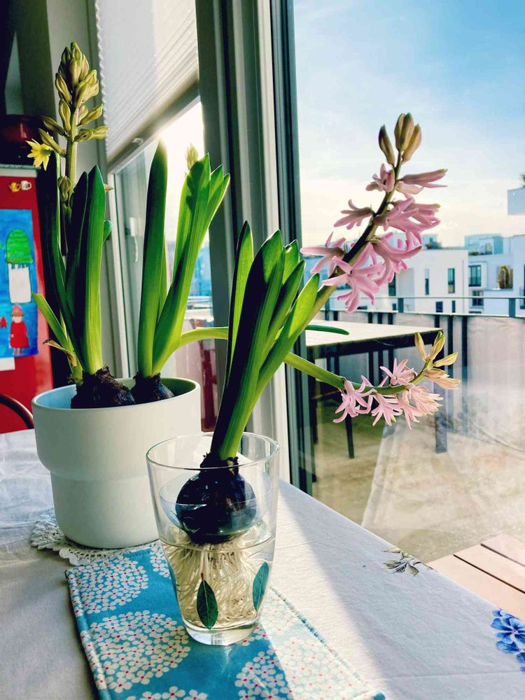 窓辺,花のある暮らし,ヒヤシンス鉢植の投稿画像