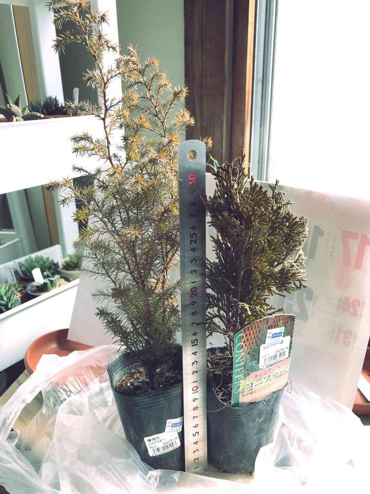 処分コーナーにあった一鉢百円のコニファー。たまには盆栽作ってみようと思って買った。