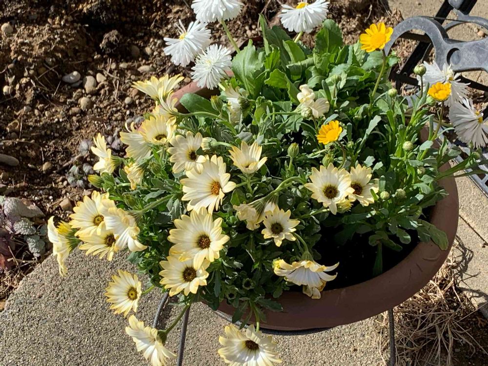 寄せ植えにした翌日がものすごい強風で倒れまくった状態になってしまったのですが数日経って少しだけ回復