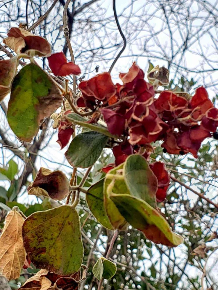 いつも 垣根に絡み付いている感じだったけれど 落葉した木に絡み付いて ここにいるよ~✌️と高いところから私を見下ろしていました🌳