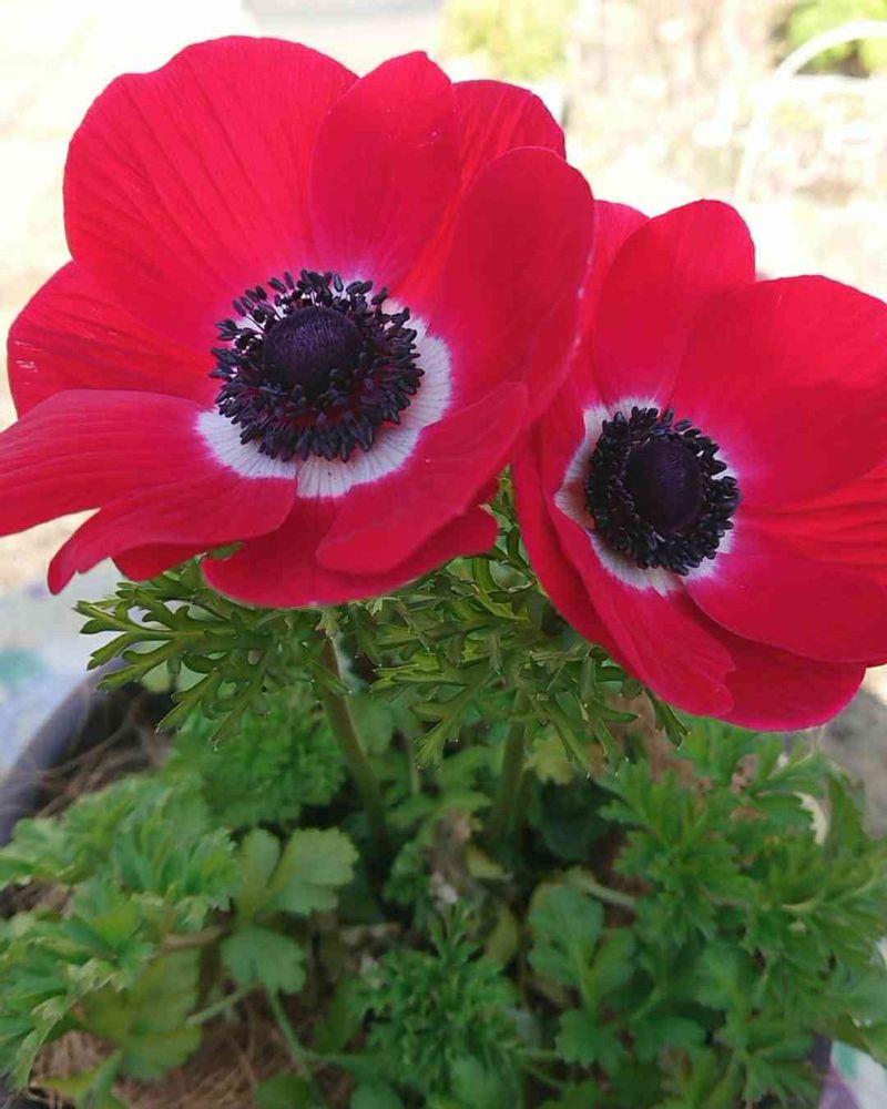 真っ赤で仲良しこよしのアネモネさんが 咲いてきました。