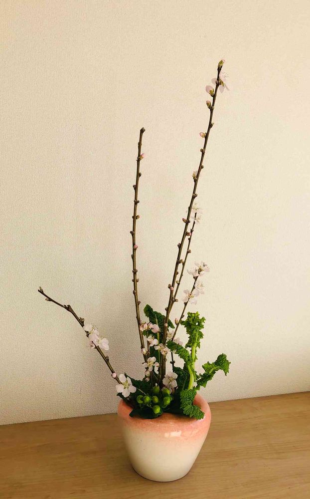 桃の花は枝がまっすぐで他のお花を生けにくかったと思います。素敵に生けられましたね。🤗♥️