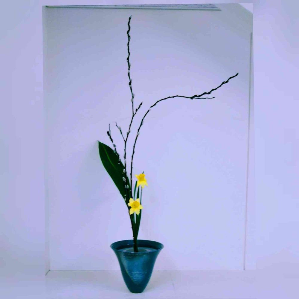 暖かいお日様のようなラッパスイセンが、春の雰囲気で作品を明るくしてくれてます。