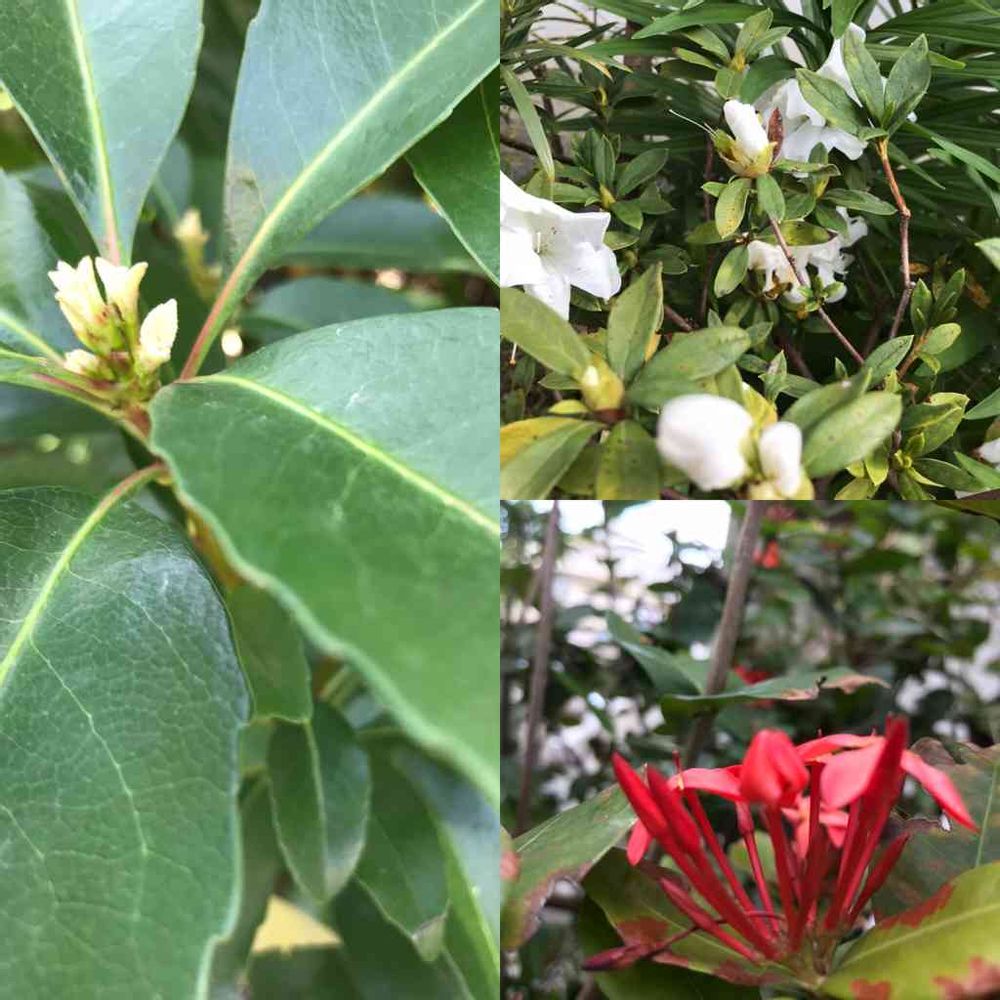 ↗️ご近所珈琲生豆屋さん(緋寒桜の綺麗な)の真っ白なツツジの蕾と花🤍
