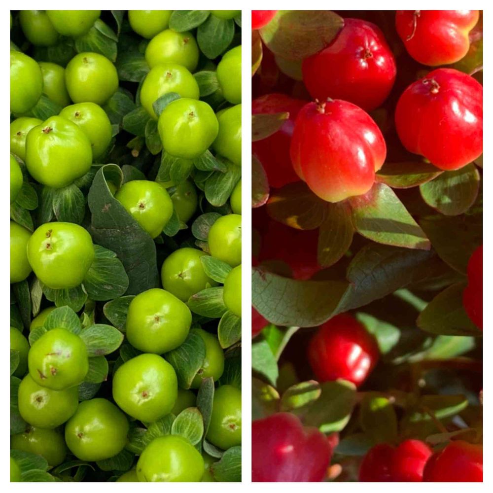 実の枝は花屋さんで買いましたが 蕾との対比が👍花の名前も覚えられましたm(__)mヒペリカム ヒペリカム🎵
