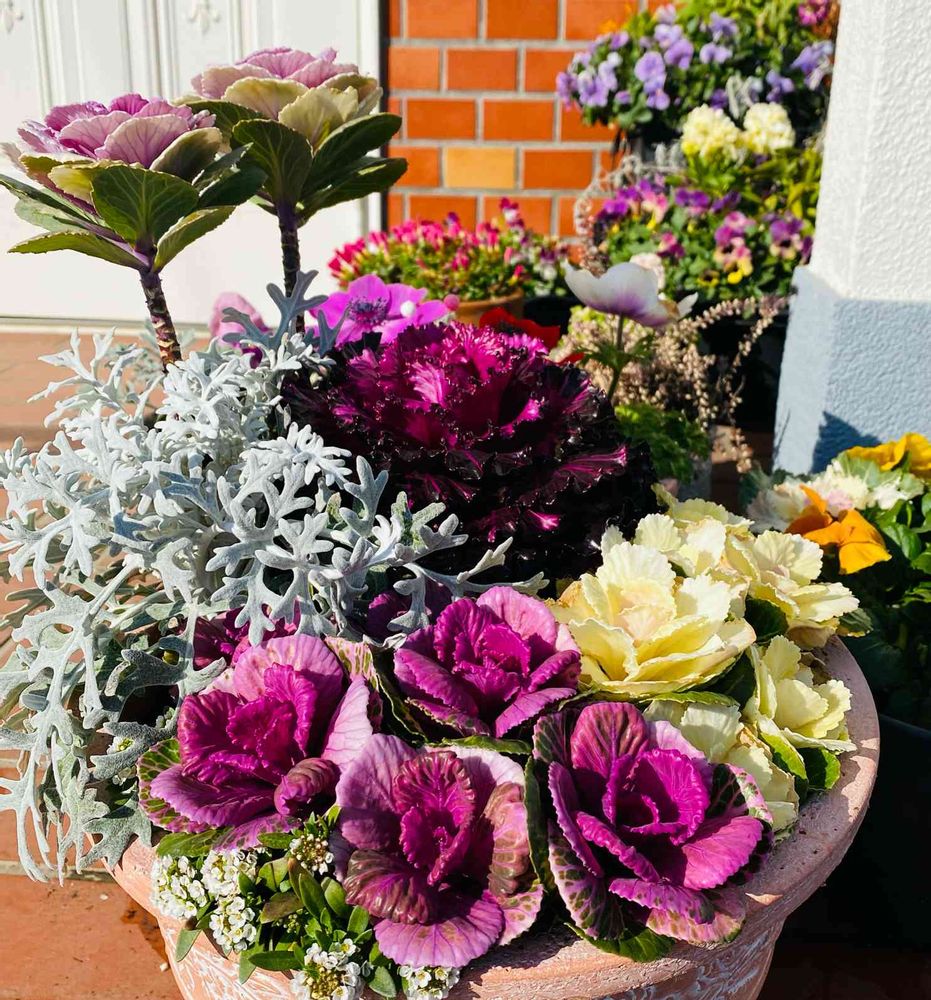 葉牡丹だけの寄せ植えもいいですよ💜💚