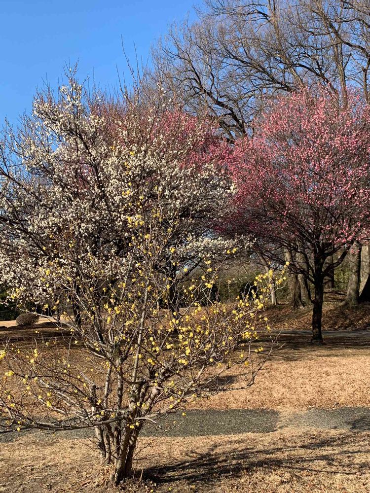 チューリップではなくて、紅梅、白梅、蝋梅の花が咲いた!