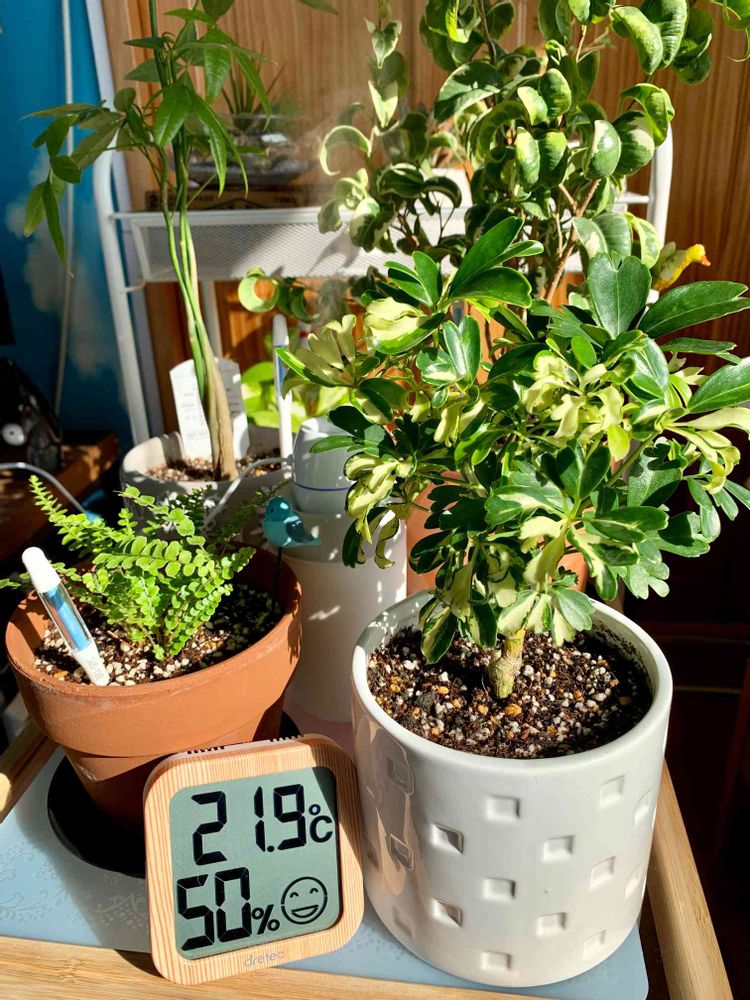 ひとまず葉水はやめて、加湿器で周りの空気に湿度を与えるに変更してから1ヶ月近く経ちますが新芽も問題なく成長してくれてます