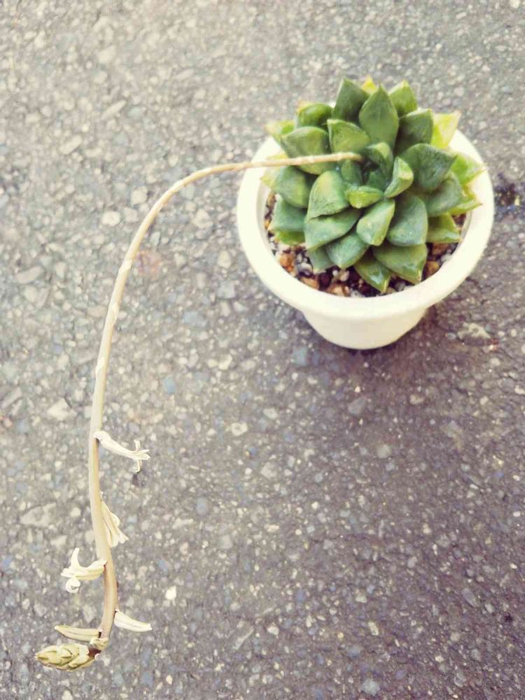 軒下放置多肉墓場👻のハオルチア。花が咲いてます。