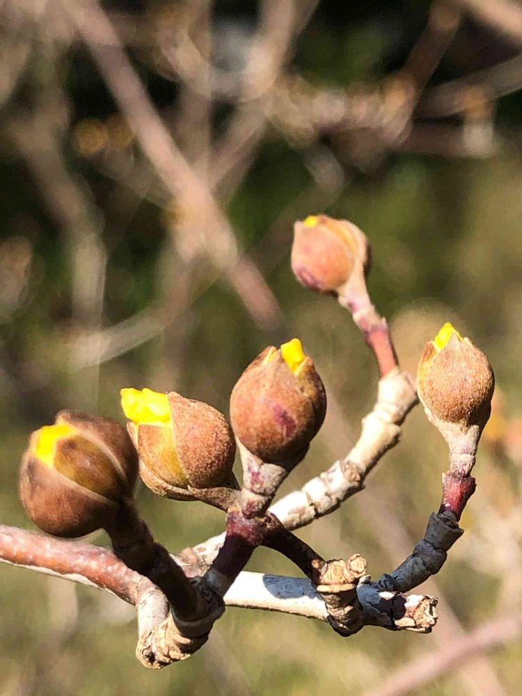 そのかわりに先日来た時に見かけたサンシュユの冬芽が綻んでいる姿にであえました。( ̄∇ ̄)
